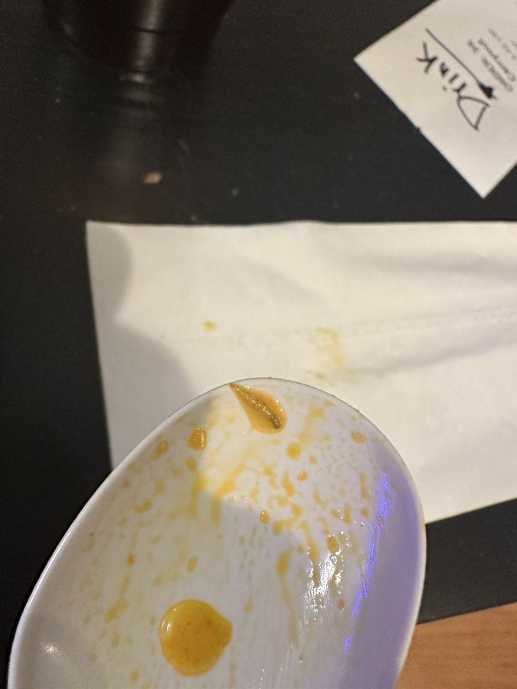 Coconut milk, bamboo, eggplant, pepper and basil. Medium spicy